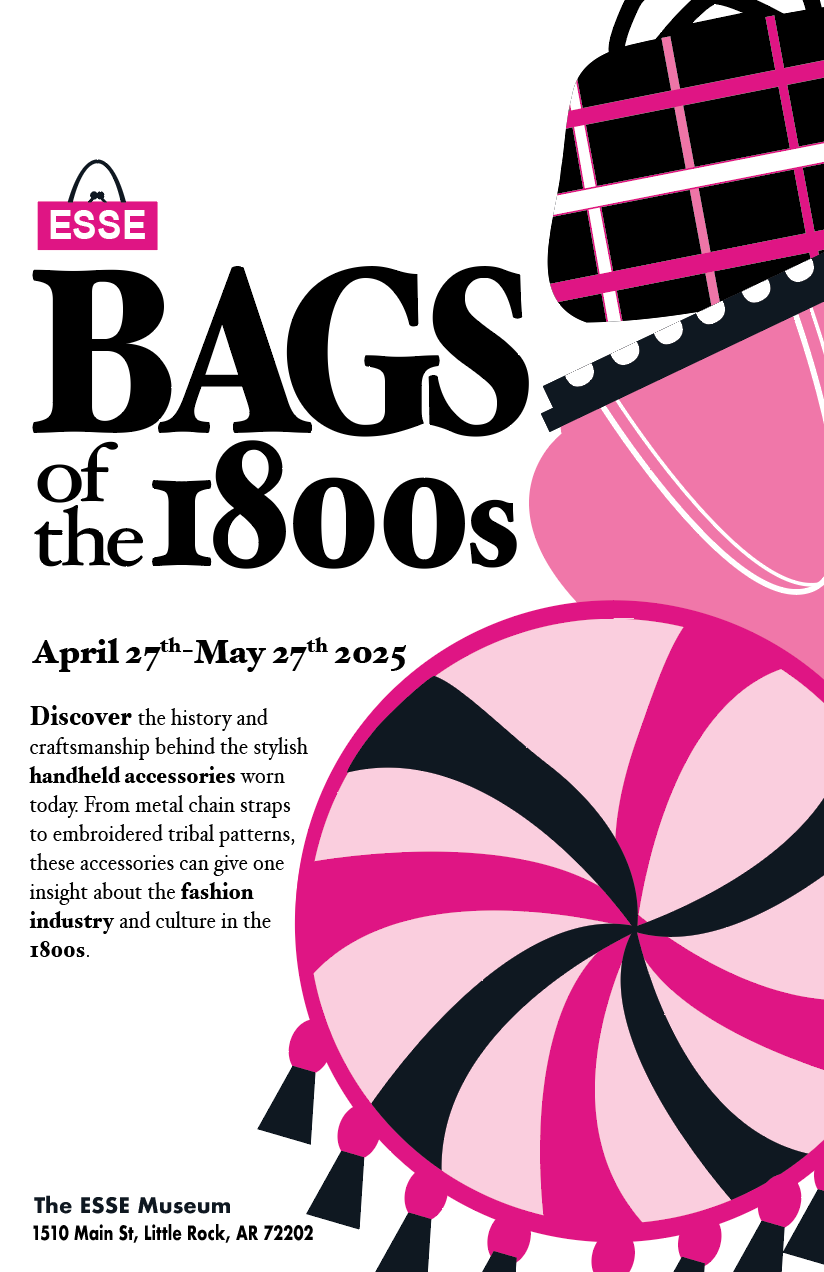 This poster shows three handbag designs from the 1920s: cotton crochet, embossed leather, and papier-mâche. This is a ficitional event, but inspired by the
